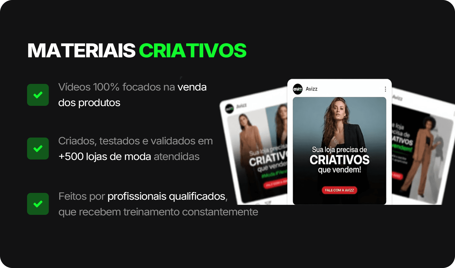 Minha loja tinha muita curtida, mas o caixa não fechava. A Avizz ajustou nossa comunicação e os anúncios. O resultado? Paramos de atrair só curiosas e passamos a vender pra quem realmente compra. Em 3 meses, o faturamento dobrou e hoje vendo todos os dias